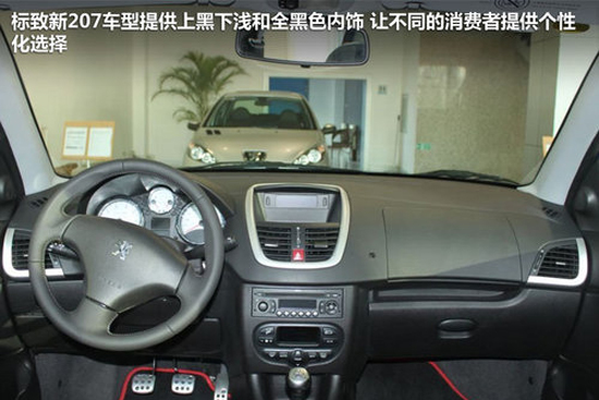 标致新207的仪表台由塑料材质包裹,整体设计与老款车型没有区别。在内饰方面,标致新207车型提供上黑下浅和全黑色内饰,让不同的消费者提供个性化选择。新207依然采用了三幅式方向盘,突出了这款车的运动性。方向盘3点和9点方向有凹槽设计,手握感觉不错,不过这款方向盘包覆的真皮材质质地较硬。