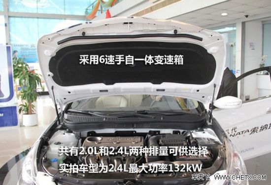 索纳塔八搭载了排量为2.0L和2.4L的两款发动机,缸盖和缸体都采用铝制材料,它们均具有DVVT双可变气门正时技术。以2.0L来说,其最大功率可达121KW/6200rpm,峰值扭矩198N.m/4600rpm,技术参数表现十分的出色。索纳塔八使用了自产的6速手自一体变速箱,这目前也是现代与起亚的当红产品,虽然没有双离合先进,在实际表现中平顺性和换挡时间方面还都不错。