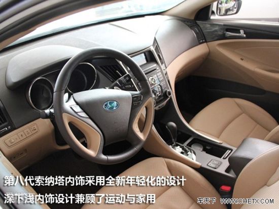 第八代索拉塔采用了流体雕塑设计风,从车前脸到车顶再延续到车尾一气呵成。在形成视觉冲击力的同时,更勾勒出了一种轿跑车的风格,这种感觉和大众CC(报价 参数 图片 论坛)(报价 参数 图片 论坛)、奔驰CLS(报价 参数 图片 论坛)(报价 参数 图片 论坛)等车有近似的元素。内饰做工比较精良,设计上也比较前卫,只是硬质材料使用较多,手感并不柔和。