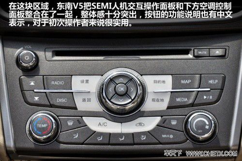 相较之下东南V5菱致(报价 参数 图片 论坛)增更强调居家的温馨感,设计简洁、功能集成度更高的中控台被流畅的曲线所勾勒,不过在材质上其与速锐处在一个档次。