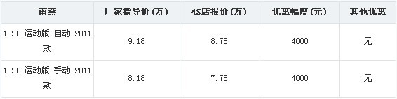 编辑从重庆长安铃木银鑫4S店处了解到,现在购买雨燕(报价 参数 图片 论坛)运动版,享4000(报价 参数 图片 论坛)现金优惠,店内现车有售。