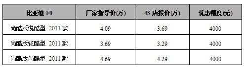 车天下 > 汽车资讯 > 车价快报 > 重庆比亚迪F0现车有售 购车优惠4000元