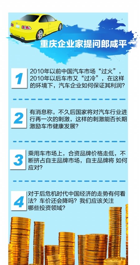 除了演讲外,郎咸平教授还将现场和参会高管互动,并回答重庆商报收集的读者提问。他的问答,将公布在6月7日的重庆商报关于本届车展的报道中。