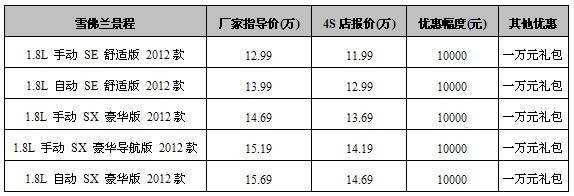 车天下汽车网编辑从重庆上海通用雪佛兰美冠4S店处获悉,2012款景程(报价 参数 图片 论坛)系列优惠一万(报价 参数 图片 论坛),再送礼包,致真版除外。具体优惠如下: