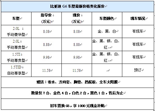 比亚迪G6 8月给力清销8.98万包牌仅限7台
