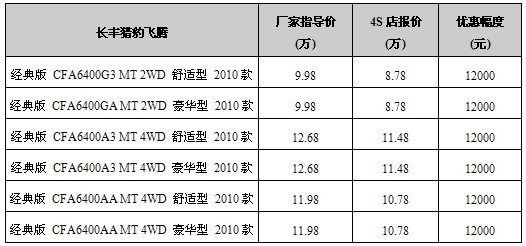 车天下汽车网编辑从重庆猎豹宜北4S店处获悉,目前购飞腾经典版车型享1.2万(报价 参数 图片 论坛)现金优惠。具体优惠如下表: