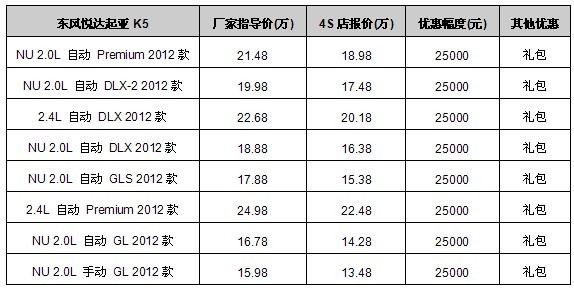 重庆东风悦达起亚K5优惠25000元 送礼包