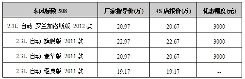 车天下汽车网编辑从重庆东风标致同捷4S店处获悉,目前购买标致508(报价 参数 图片 论坛)全系,享3000(报价 参数 图片 论坛)现金优惠。具体优惠如下表: