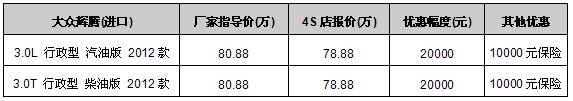 车天下 > 汽车资讯 > 车价快报 > 购进口大众辉腾优惠2万 送价值万元保险