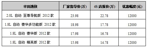 车天下汽车网编辑从重庆万州广汽丰田互邦4S店处获悉,即日起到店购买广丰逸致(报价 参数 图片 论坛)车型可享受12000(报价 参数 图片 论坛)优惠。优惠详情如下表: