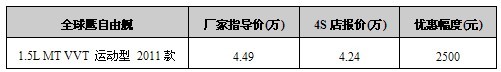 车天下汽车网编辑从重庆全球鹰金都4S店处获悉,购2011款远景(报价 参数 图片 论坛)指定款优惠2500(报价 参数 图片 论坛),特价4.24万元。优惠详情如下表: