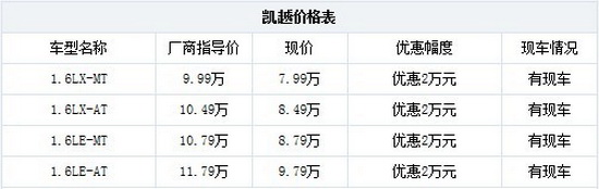凯越竞争车型