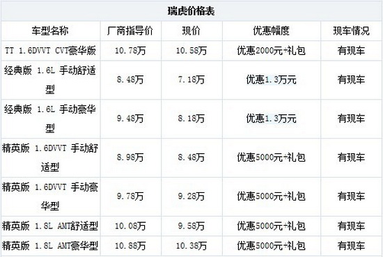 重庆诚锐奇瑞瑞虎特惠 购车综合优惠1.3万元