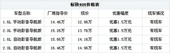 重庆东风南方标致408全系惠 购车优惠1.5万