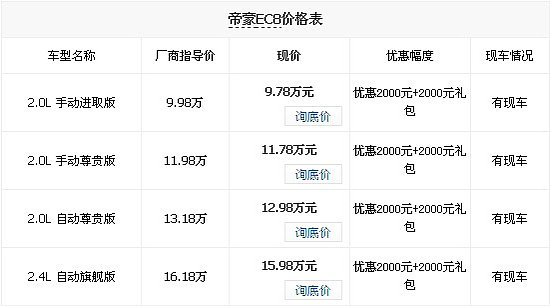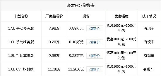 帝豪EC7最新资讯