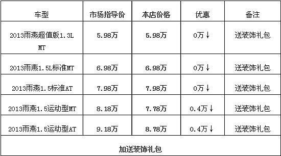 车天下 > 汽车资讯 > 车价快报 > 2013新款雨燕5.98万起 送精美装饰礼包
