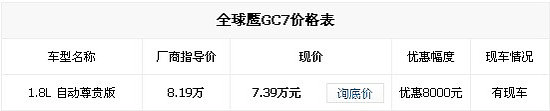 车天下 > 汽车资讯 > 车价快报 > 重庆金都球鹰自由舰1.5L惠5000 GC7 1.8AT惠8000
