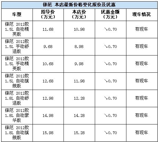 广本长捷汽博店锋范(报价 参数 图片 论坛)引爆全城最低价,锋范最高优惠2.2万,6月国际车展政策提前放,全系车型实际现金优惠幅度远大于网络报价,欢迎来电咨询到店体验,来电咨询另有现金优惠及惊喜大礼包可得。