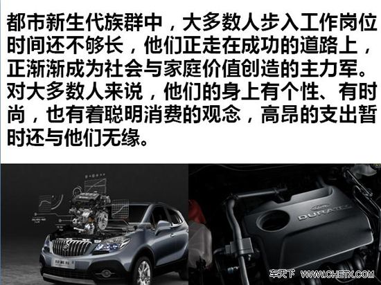 都市新生代族群中,大多数人步入工作岗位时间还不够长,他们正走在成功的道路上,正渐渐成为社会与家庭价值创造的主力军。对大多数人来说,他们的身上有个性、有时尚,也有着聪明消费的观念,高昂的支出暂时还与他们无缘。就两款车的价格表现来看,昂科拉官方指导价在14.99万到19.69万间,而翼搏的官方指导价在9.48万到12.78万元间。两款同为紧凑型SUV,若不考虑其他因素,仅从价格上来看,翼搏更加符合年轻消费者的需求。当然,价格只是影响消费者购买的因素之一,与配置有关的问题将在后文中分析。